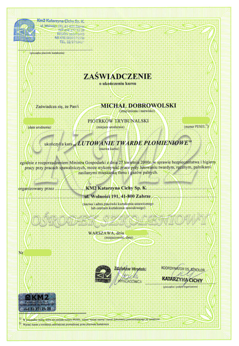 - Posiadamy certyfikaty i aktualne uprawnienia